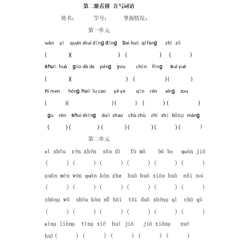 **人教版新课标一年级语文下册看拼音写词语练习题,word格式,共4页,可打印下载**