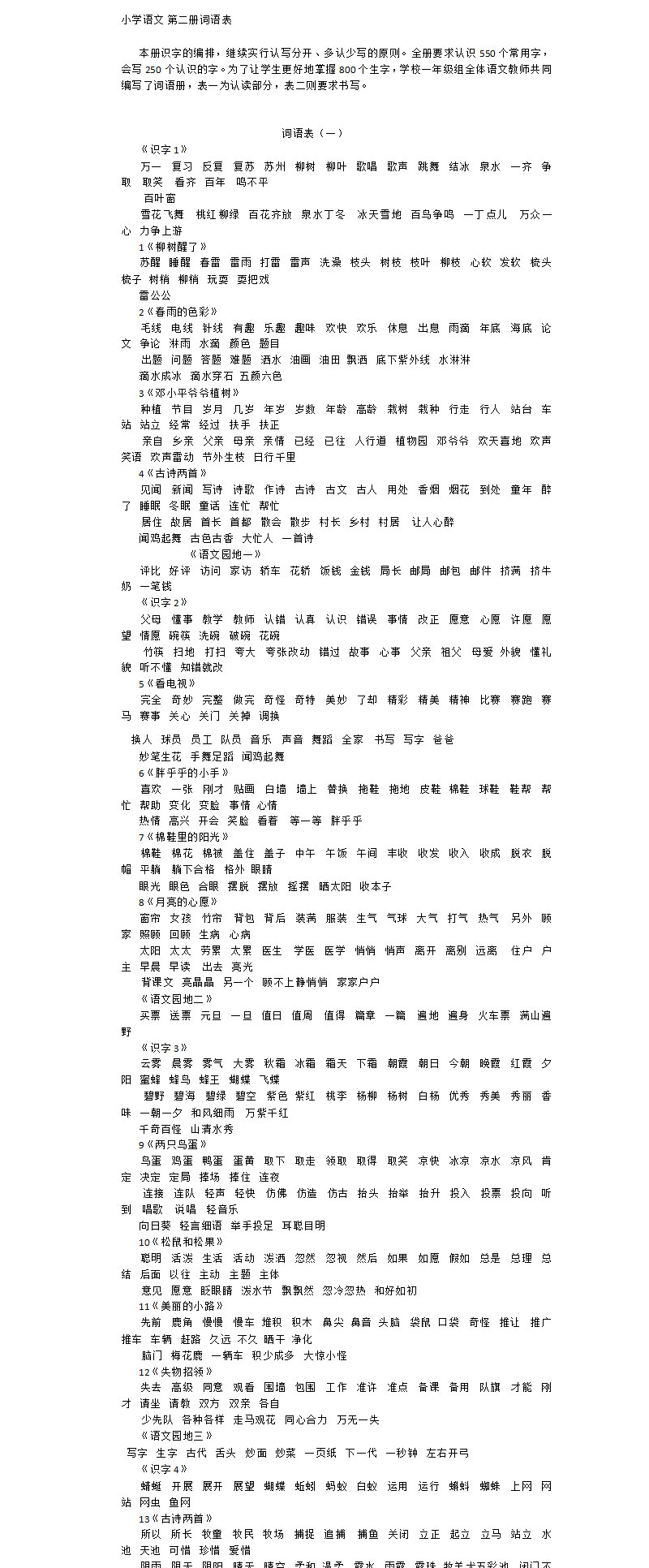 **一年级语文第二册词语表(一),word格式,共6页,可打印下载**