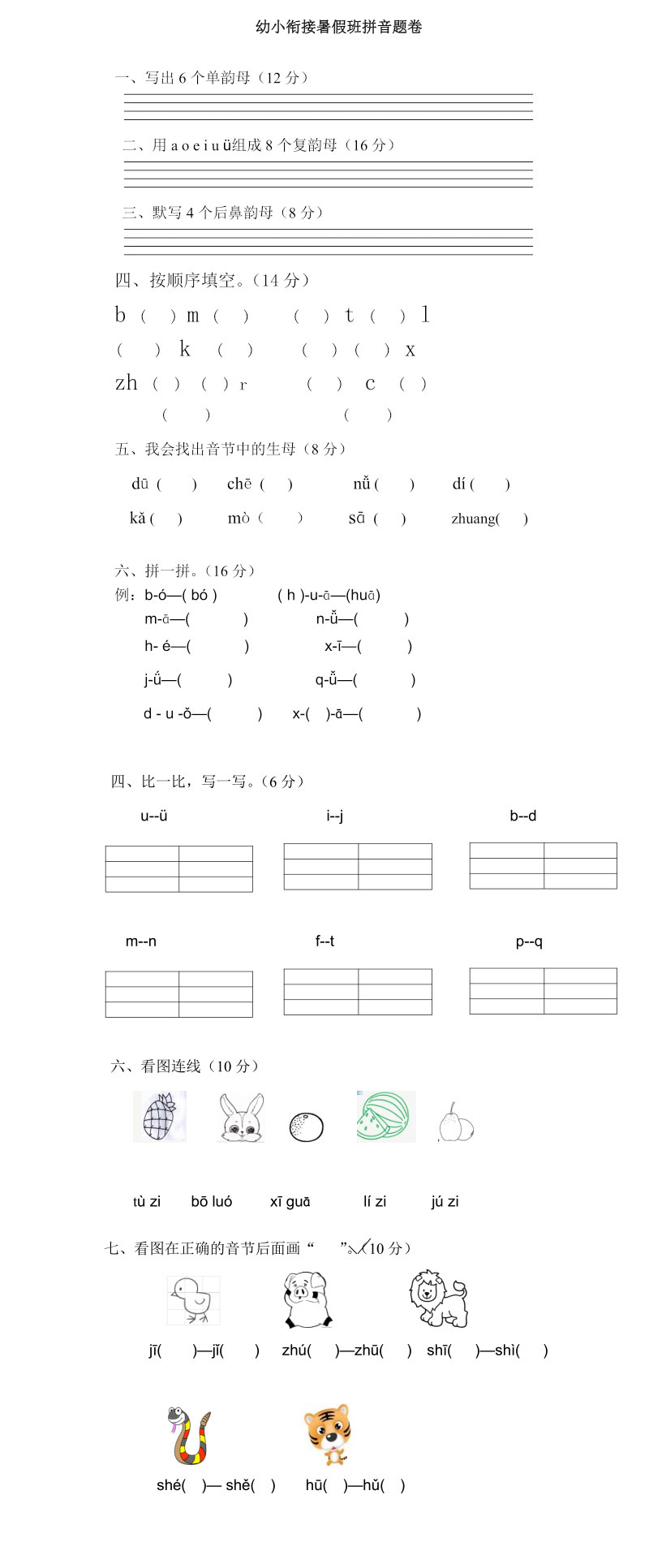 幼小衔接暑假拼音题卷,幼小衔接拼音训练题打印