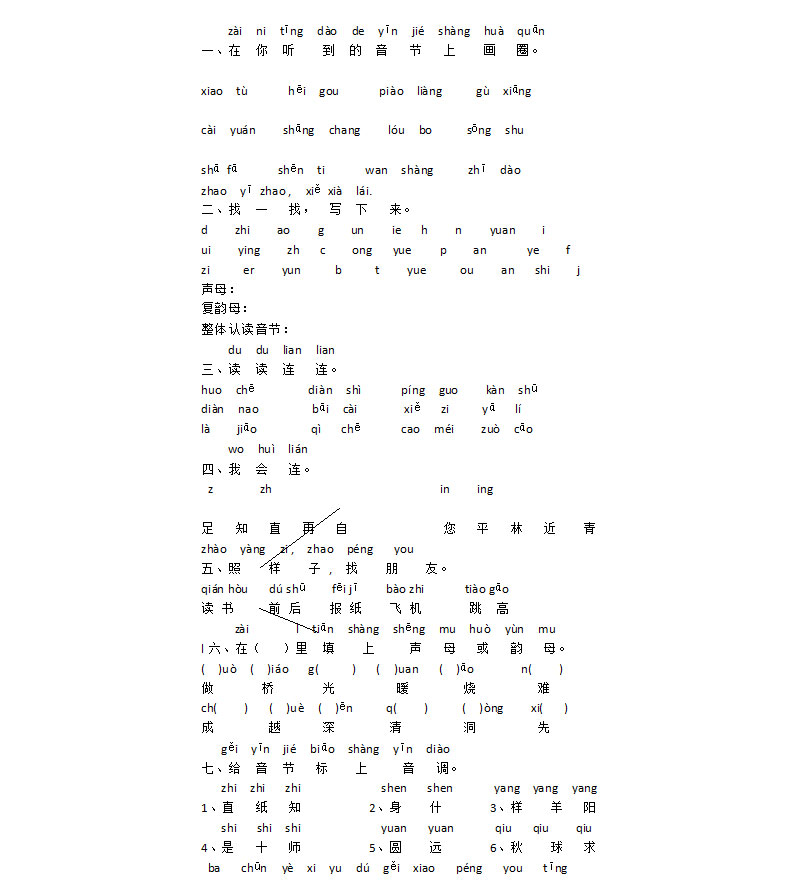 **一年级第一学期汉语拼音复习卷,word格式,共2页,可打印下载**