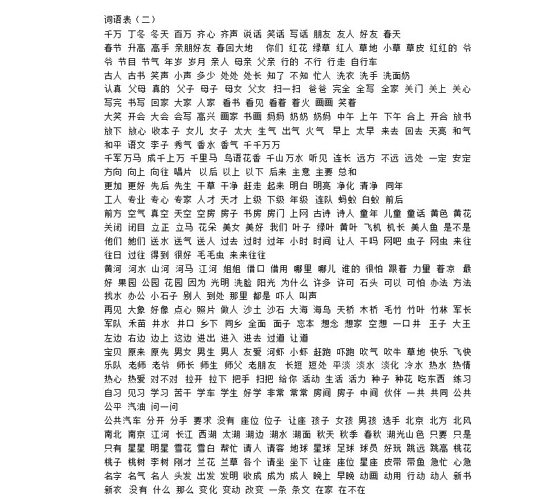 **一年级下册词语表(二),word格式,共1页,可打印下载**