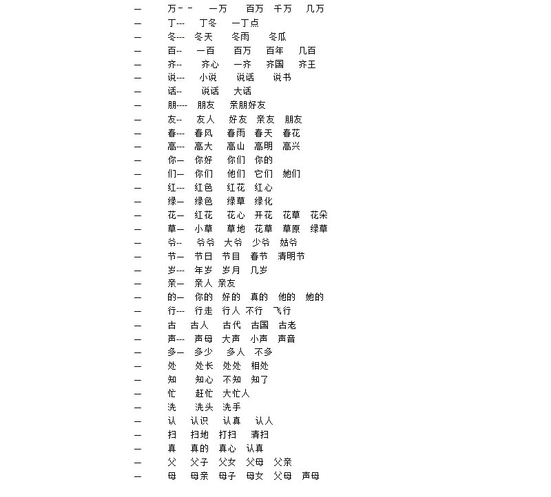 一年级下册第一单元词语