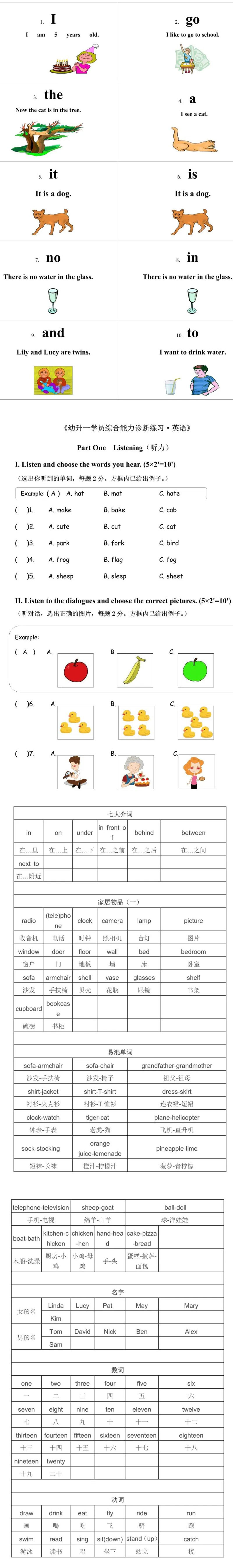 【备战幼升小】英语核心知识点,幼升小必备英语单词,句子,综合能力诊断
