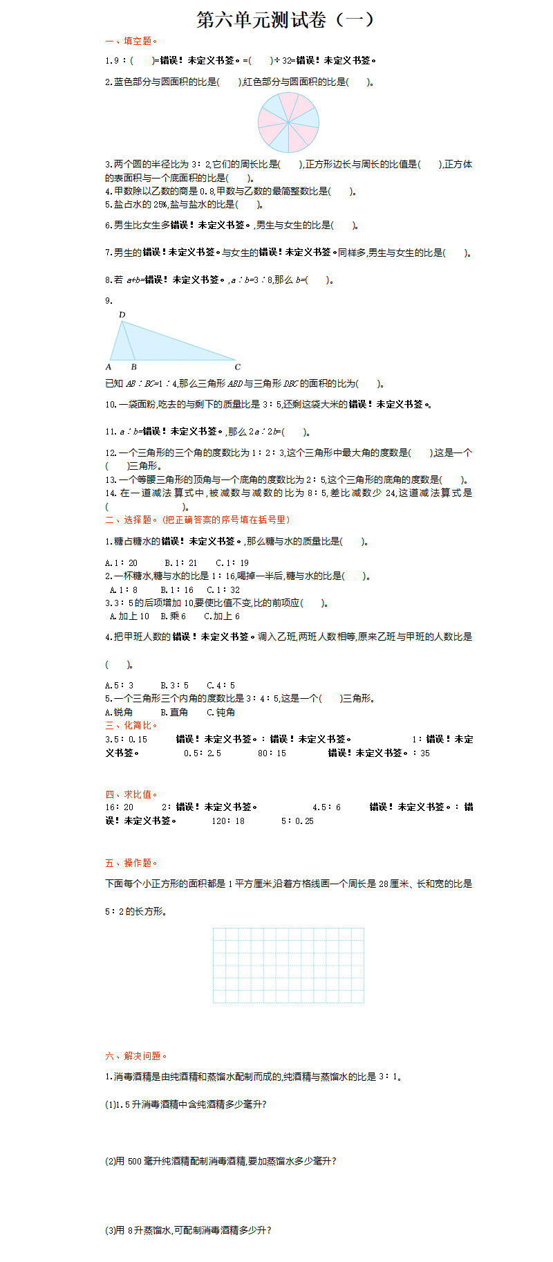 **2021年北师大版六年级数学上册第六单元测试题及答案一,word格式,共6页,可打印下载**