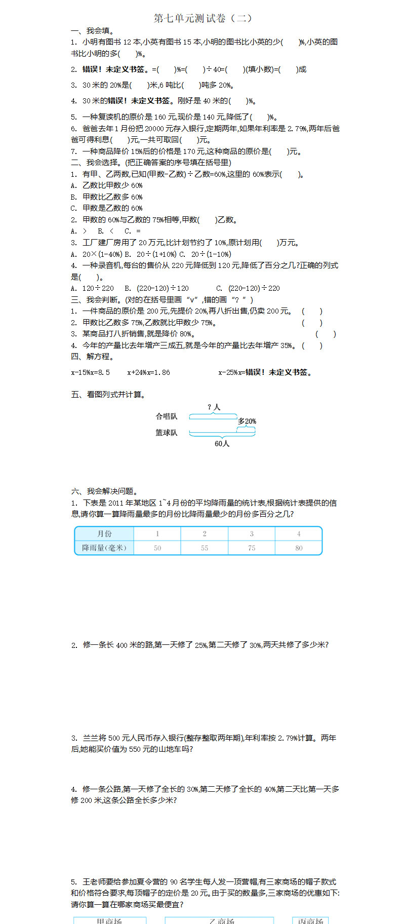 **2021年北师大版六年级数学上册第七单元测试题及答案二,word格式,共5页,可打印下载**