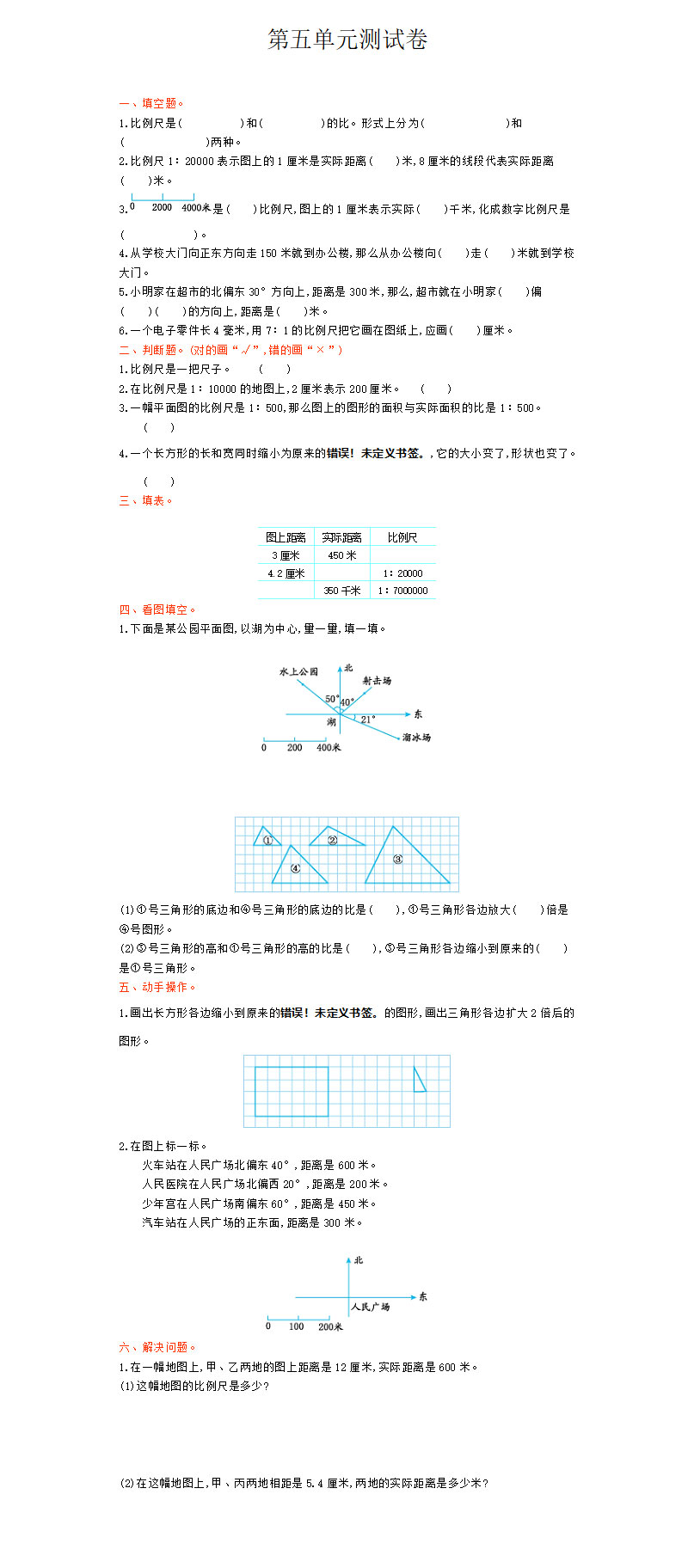 **2021年西师大版六年级数学上册第五单元测试题及答案,word格式,共4页,可打印下载**