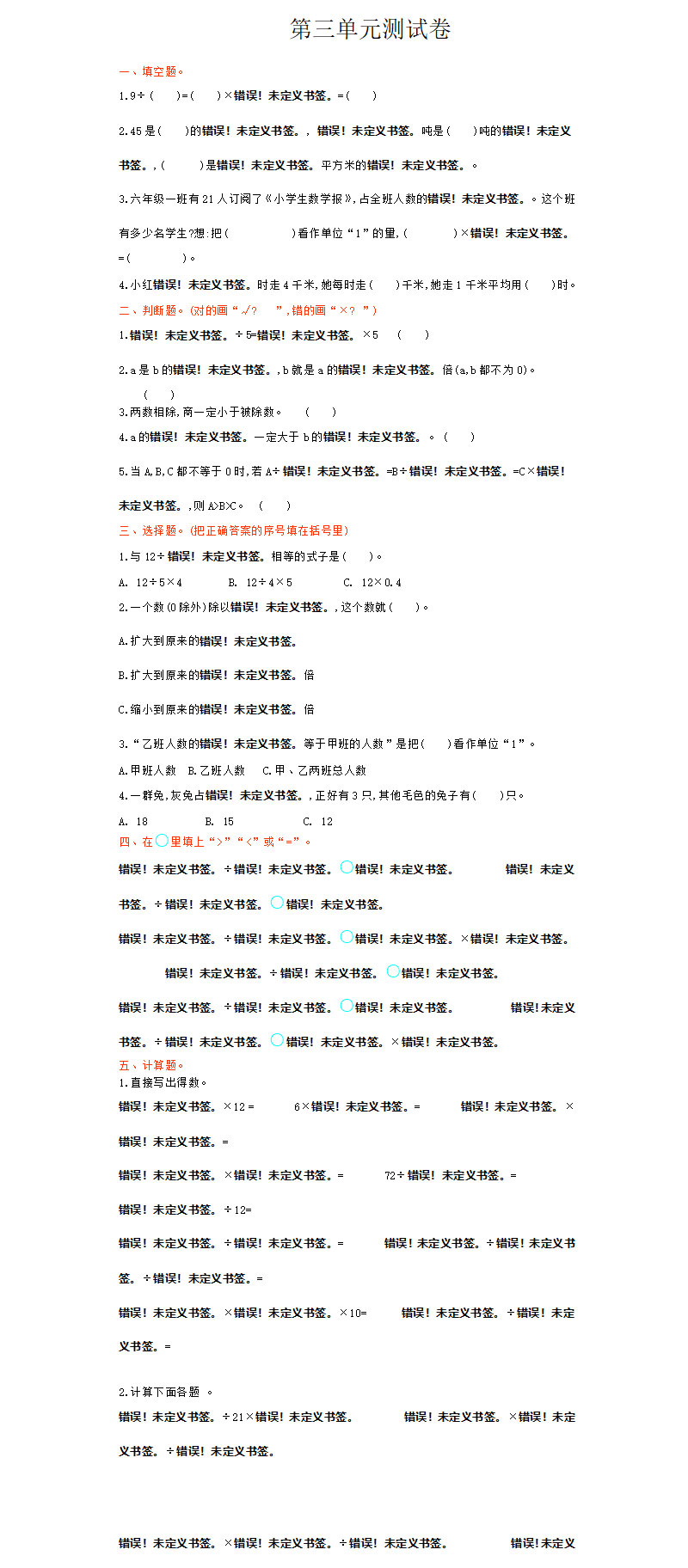 **2021年西师大版六年级数学上册第三单元测试题及答案,word格式,共4页,可打印下载**