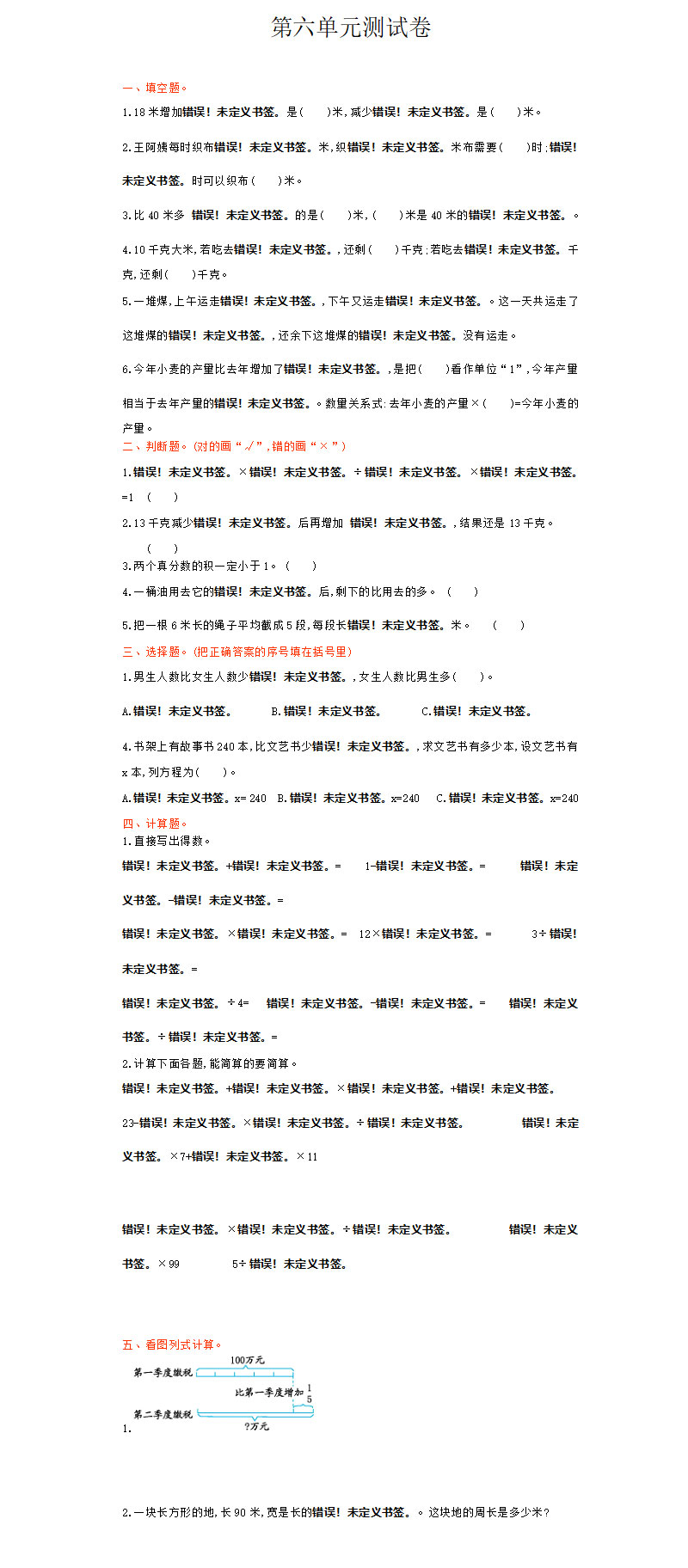 **2021年西师大版六年级数学上册第六单元测试题及答案,word格式,共4页,可打印下载**
