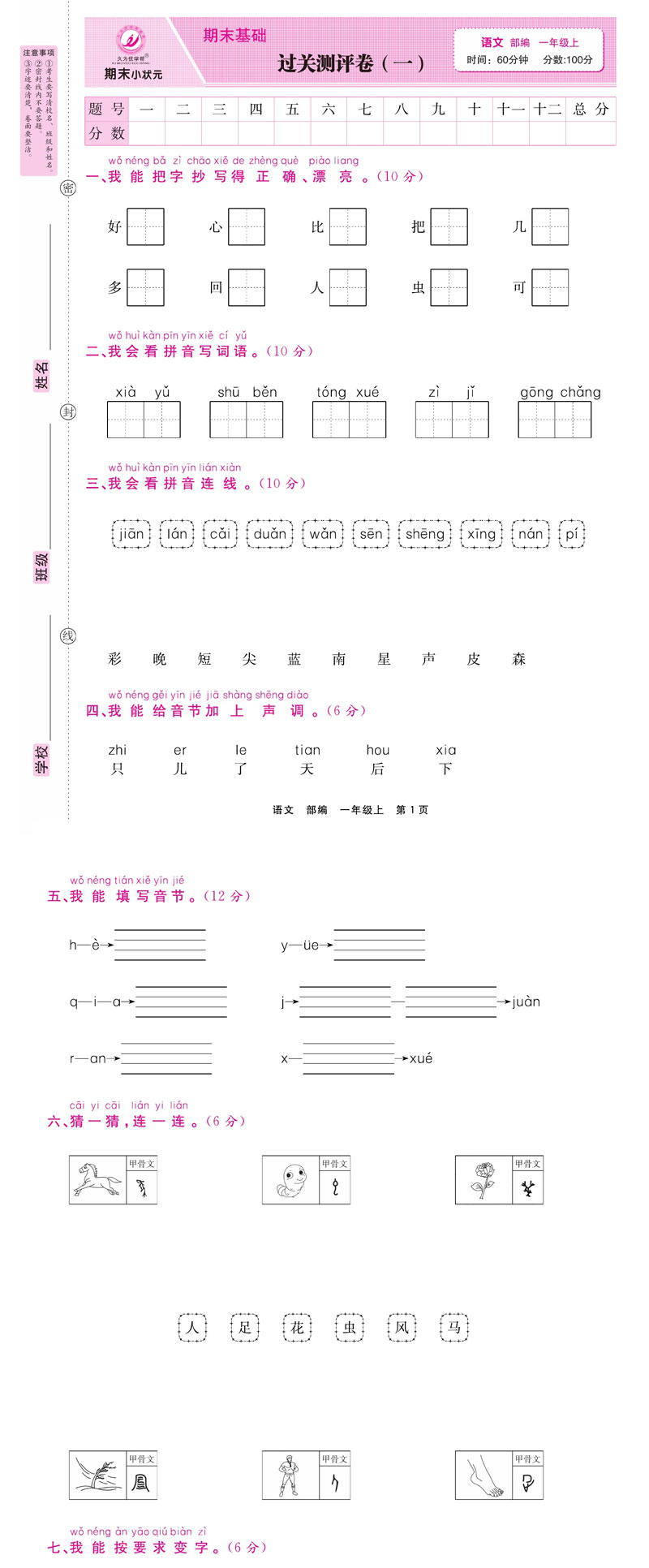 《期末小状元·久为》语文1年级上册(部编版)卷