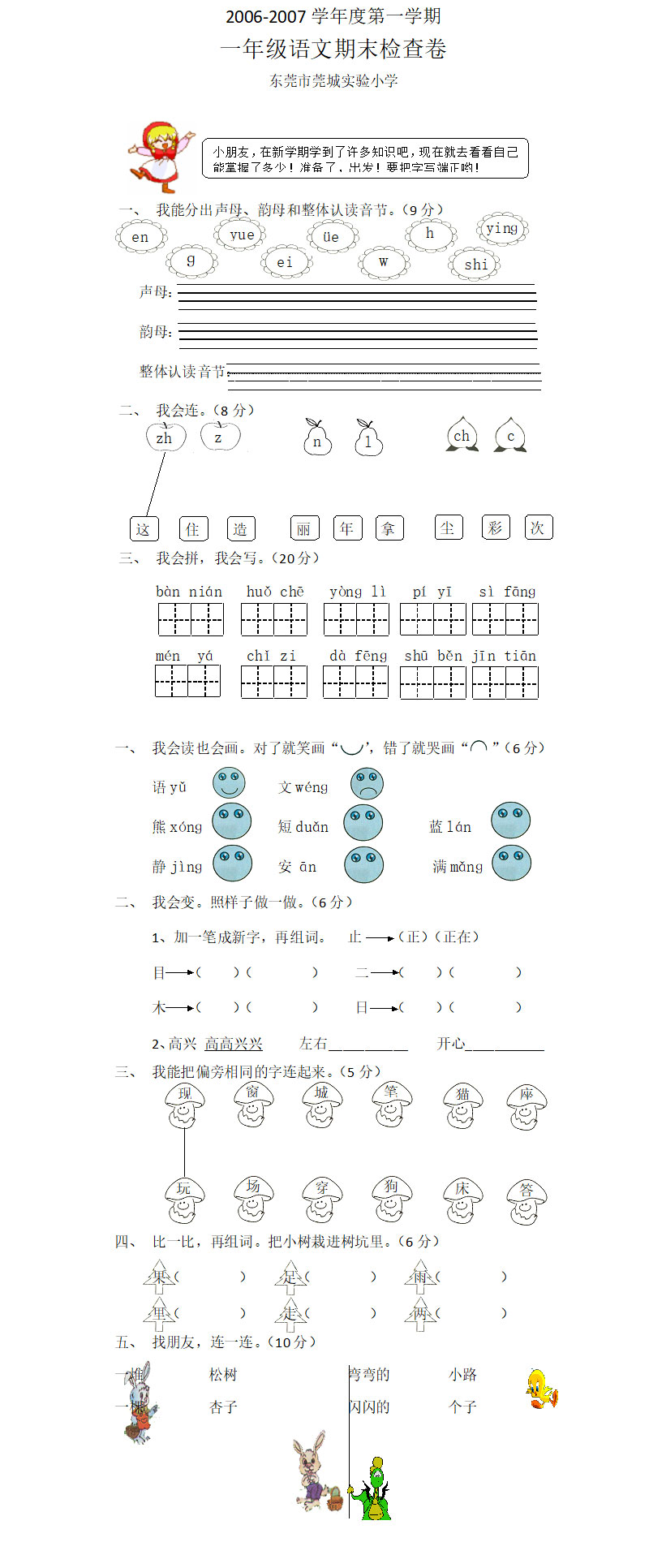 小学一年级语文第一学期期末检测卷