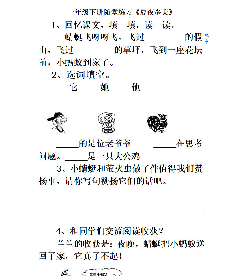 **一年级语文下册《夏夜多美》练习题,word格式,共3页,可打印下载**