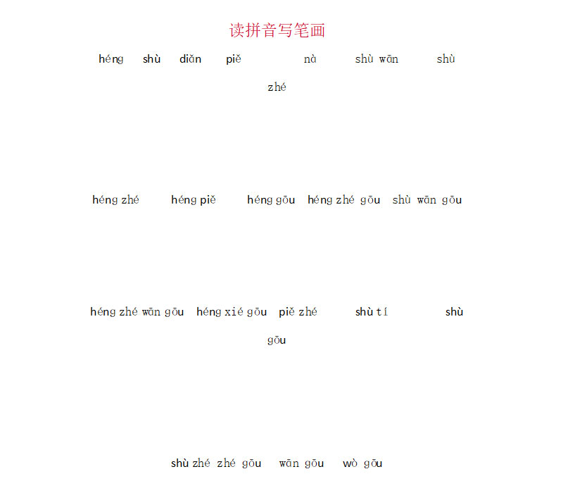 **一年级上册读拼音写笔画,word格式,共1页,可打印下载**