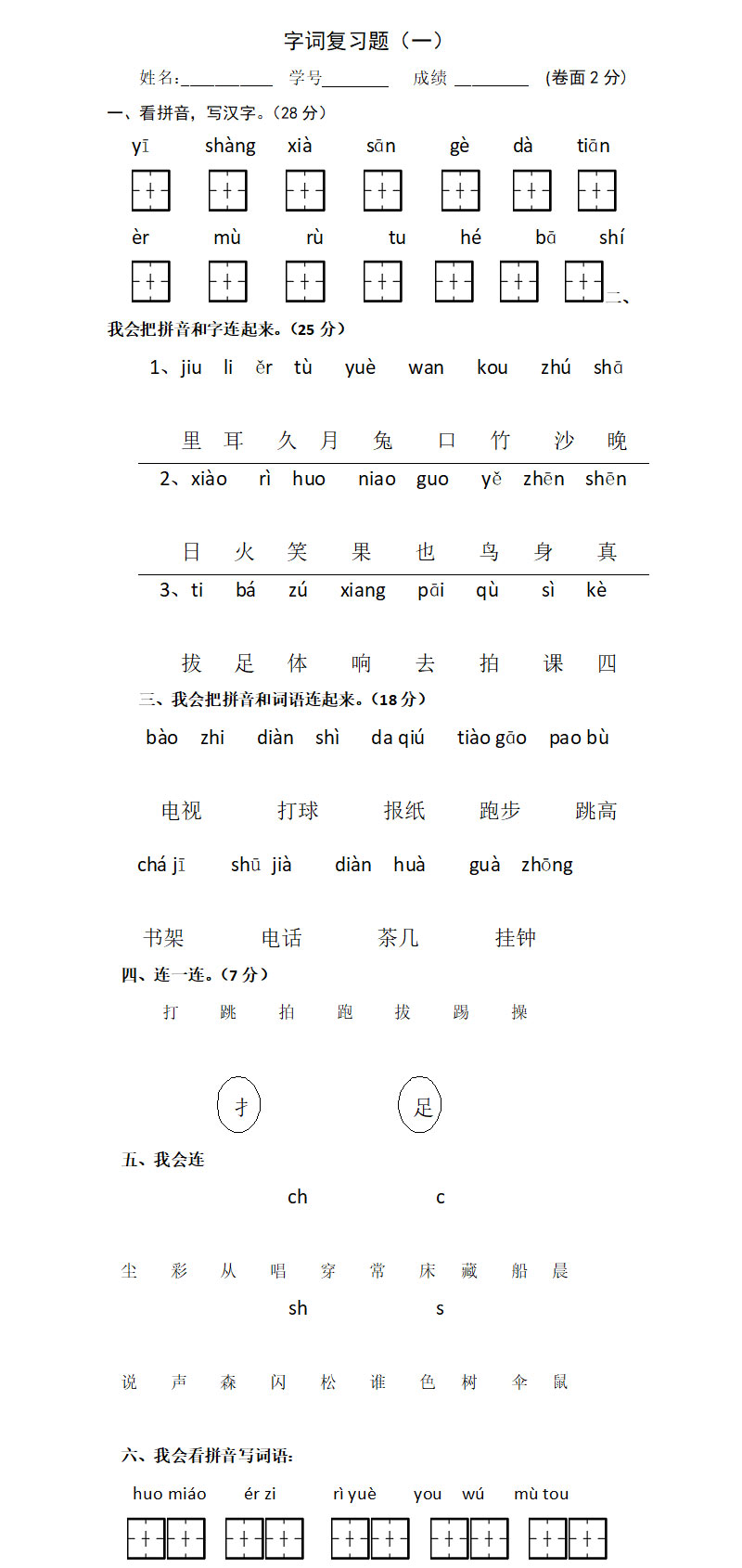 一年级字词复习一