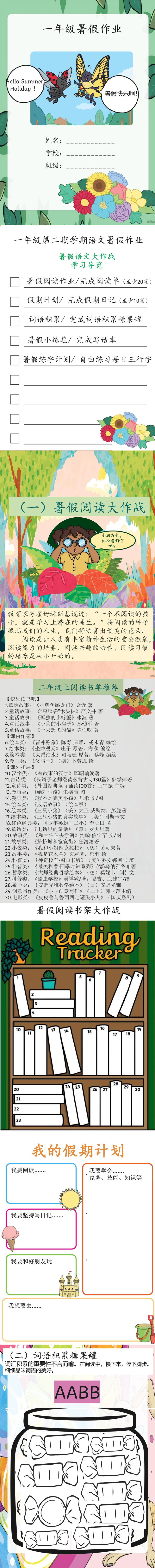 **一年级暑假特色作业,暑假计划阅读以及词语积累表格,pdf格式,共23页,可打印下载**