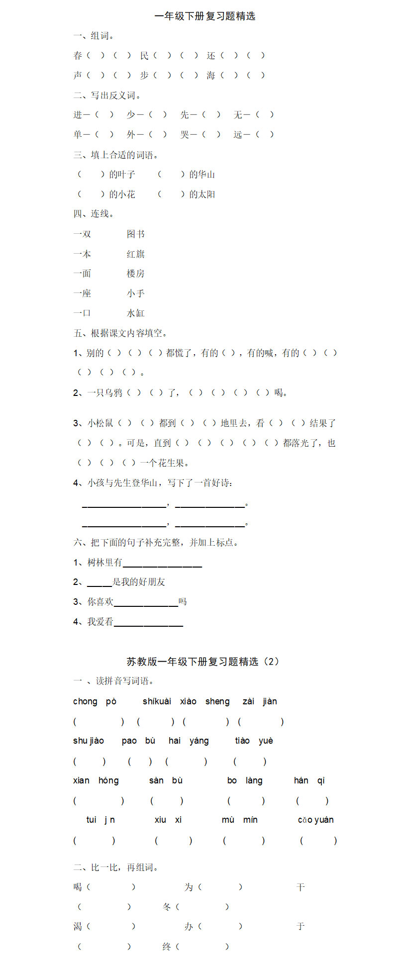 一年级语文下册复习题精选(4套)