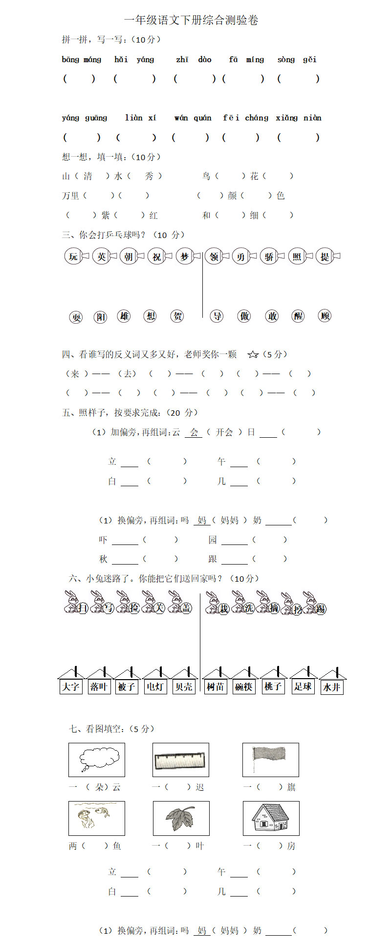 **一年级语文下册练习题,word格式,共4页,可打印下载**