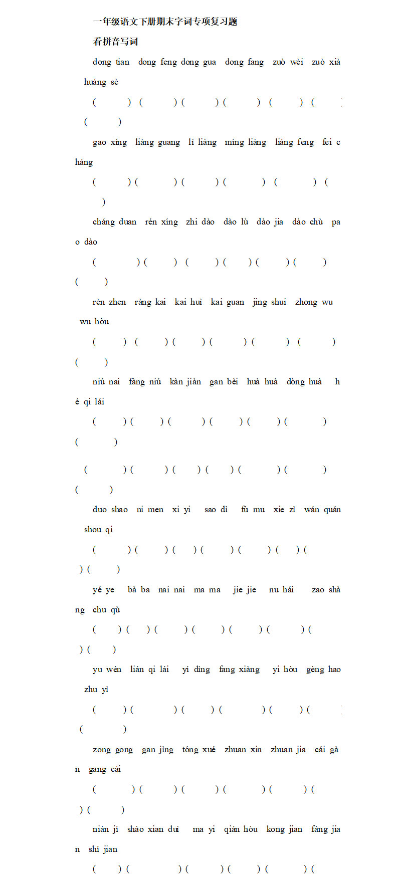 **一年级语文下册期末字词专项复习题,word格式,共14页,可打印下载**