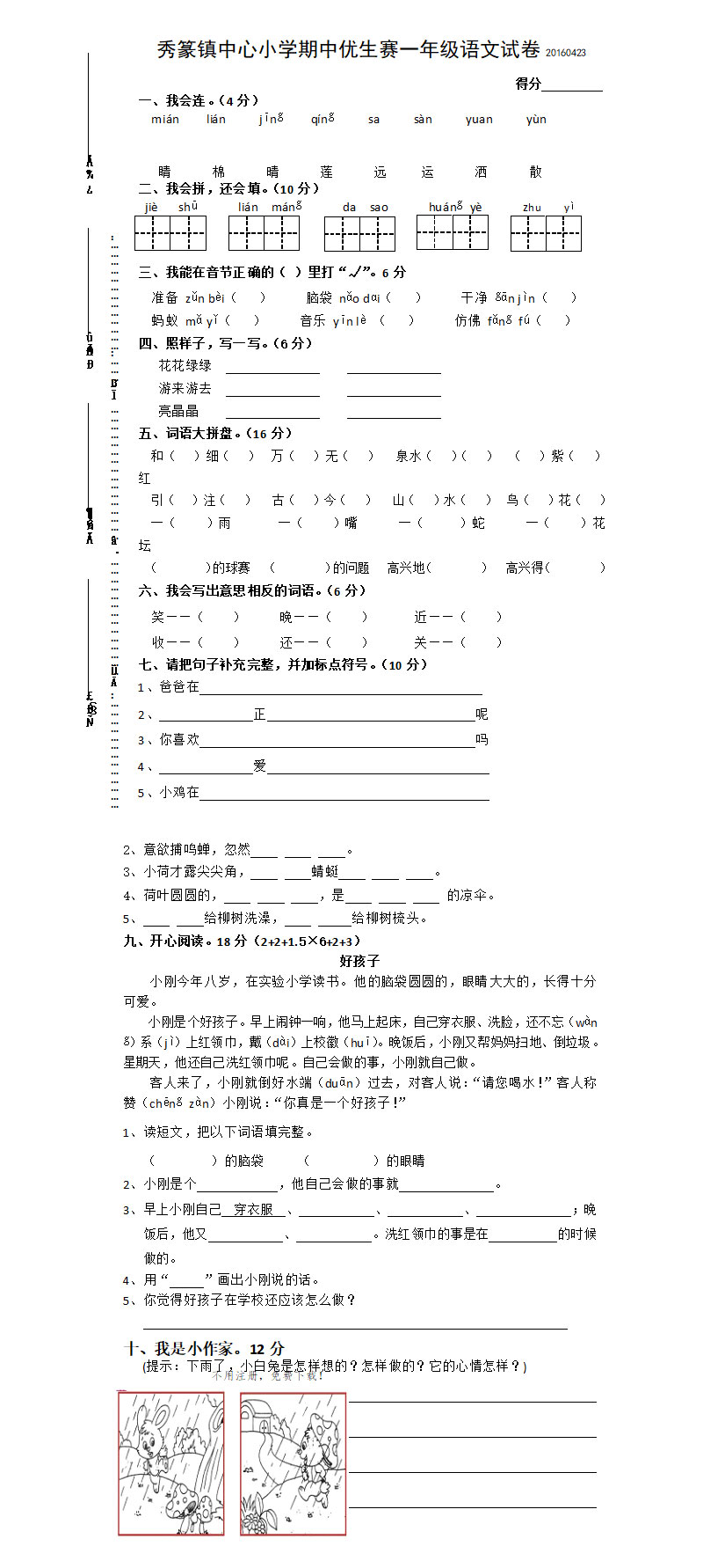 **一年级语文下册知识竞赛试卷,word格式,共2页,可打印下载**
