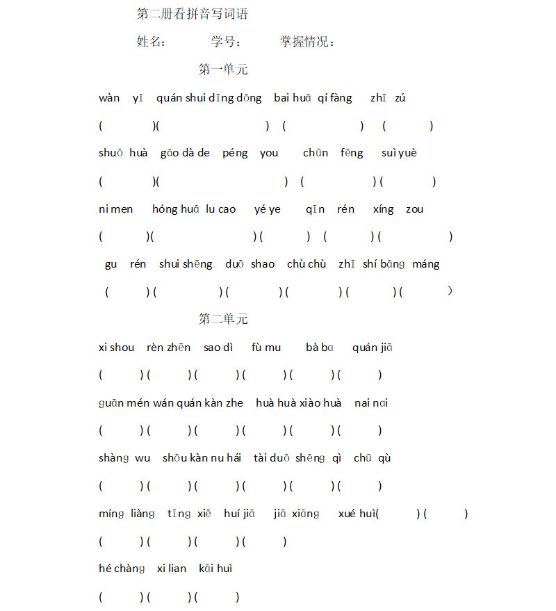 **一年级语文下册第一二单元看拼音写汉字练习题,word格式,共1页,可打印下载**