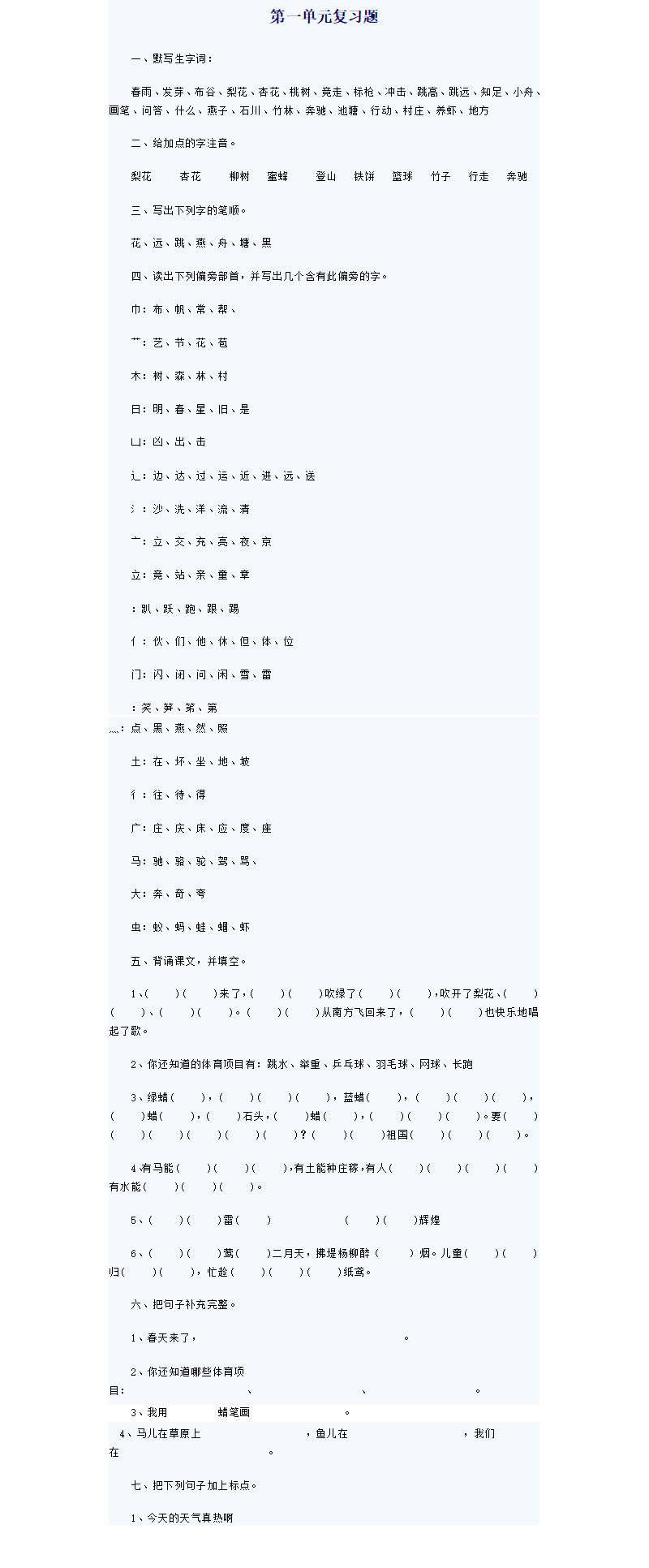 一年级语文下册第一单元复习题