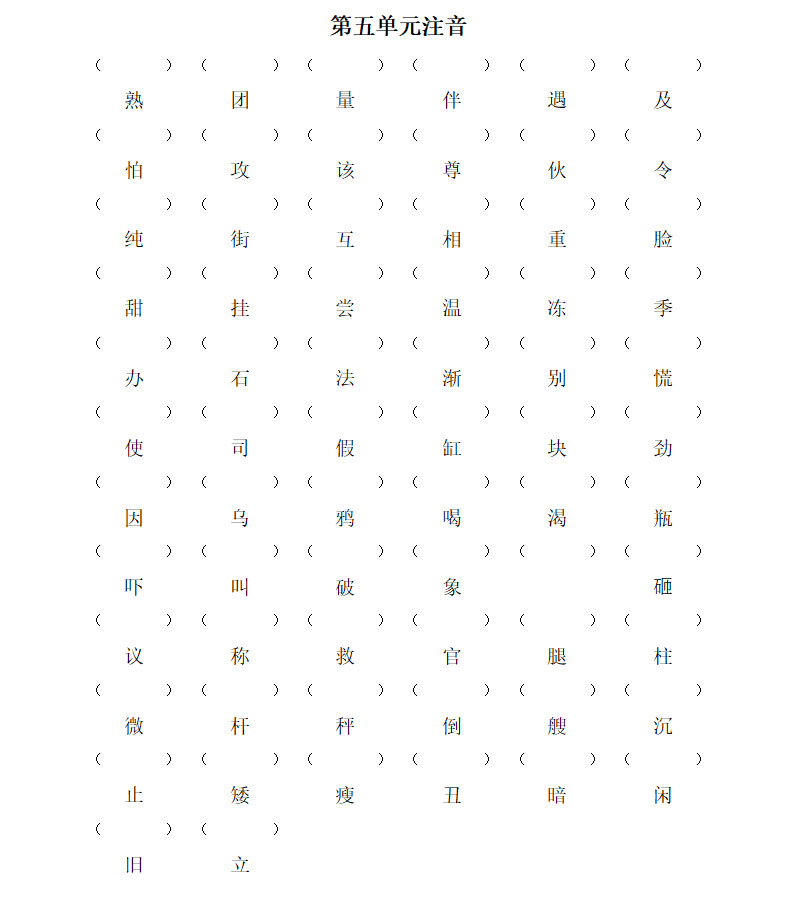 一年级语文下册第五单元注音练习题