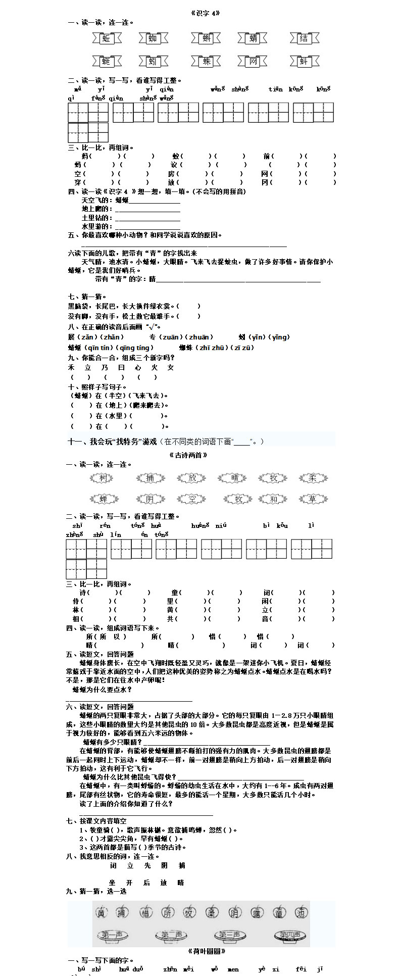 **一年级语文下册第四单元课时练习题,word格式,共8页,可打印下载**