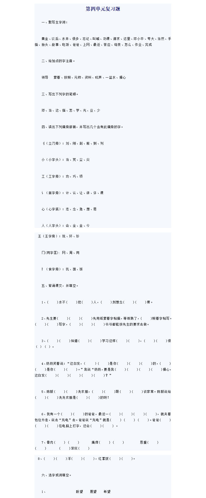 一年级语文下册第四单元复习题