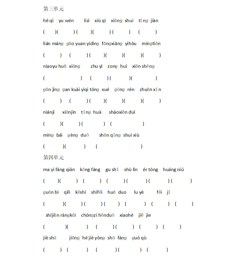 **一年级语文下册第三四单元看拼音写汉字练习题,word格式,共2页,可打印下载**