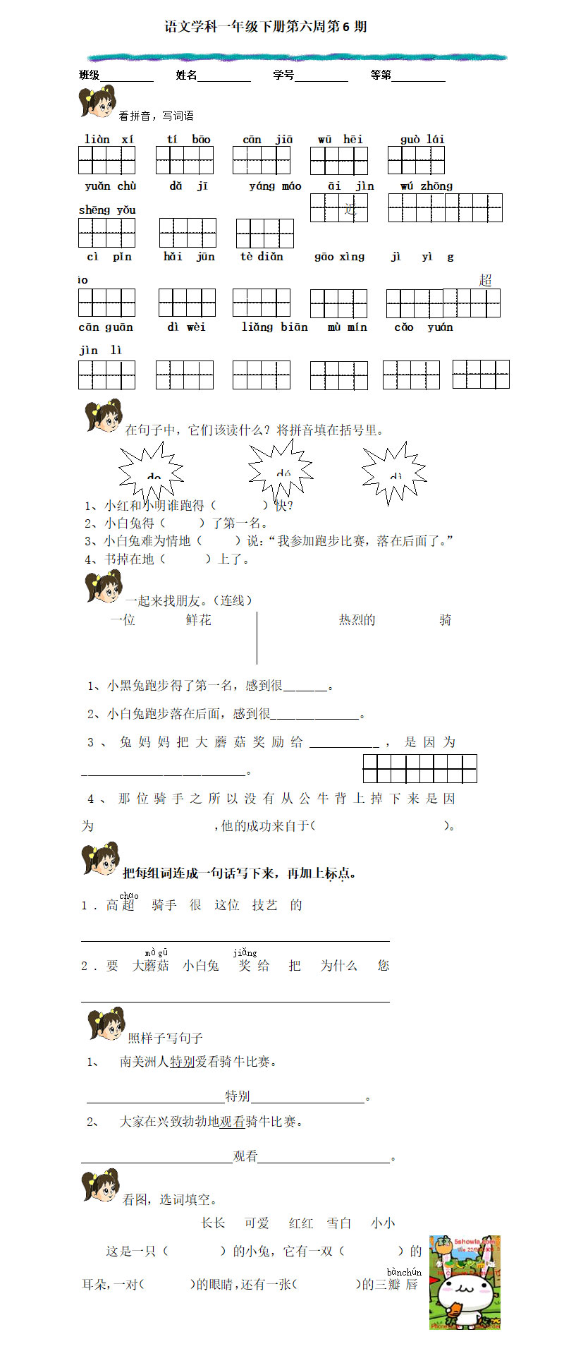 一年级语文下册第六周练习题