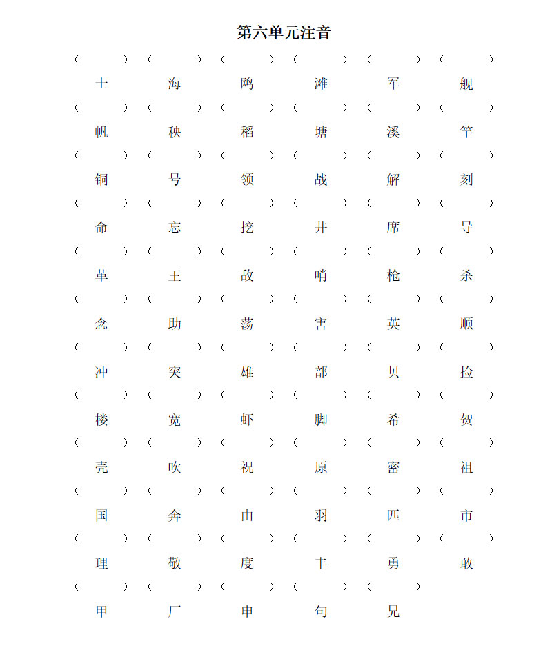 一年级语文下册第六单元注音练习题