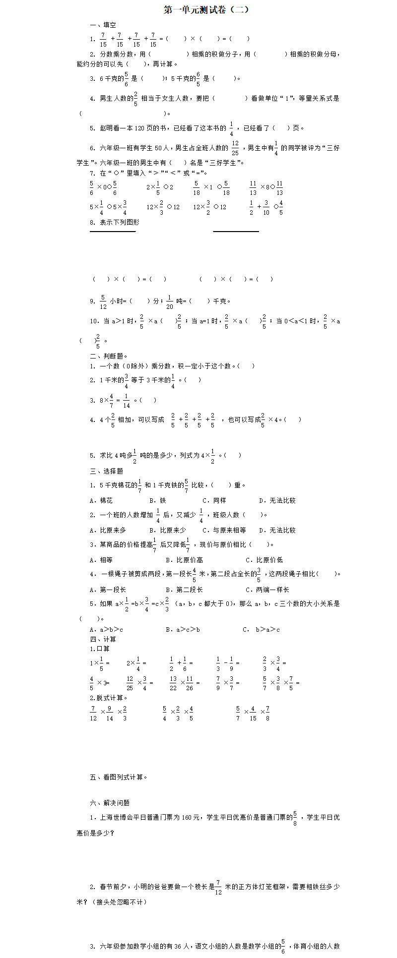 **2021年青岛版六年级数学上册第一单元测试题及答案(二),word格式,共4页,可打印下载**