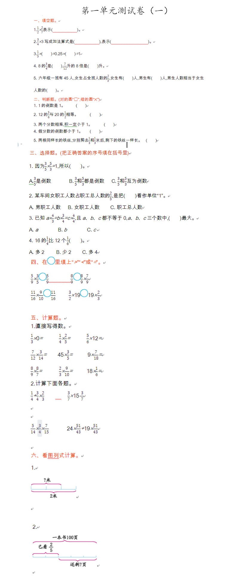 **2021年青岛版六年级数学上册第一单元测试题及答案(一),word格式,共4页,可打印下载**