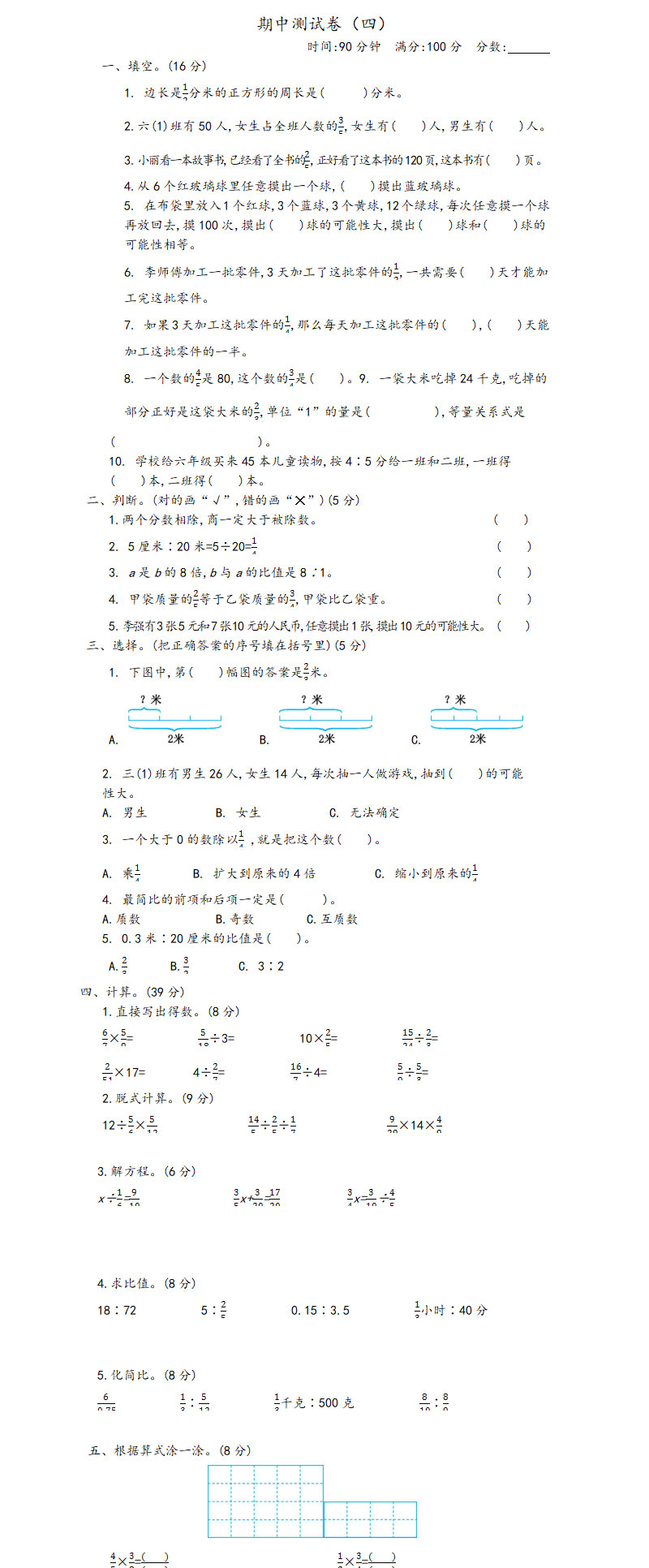 **2021年青岛版六年级数学上册期中测试题及答案四,word格式,共5页,可打印下载**