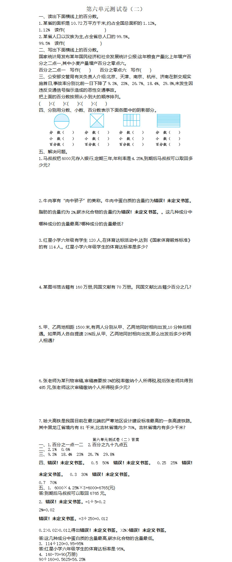 **2021年苏教版六年级数学上册第六单元测试题及答案二,word格式,共3页,可打印下载**
