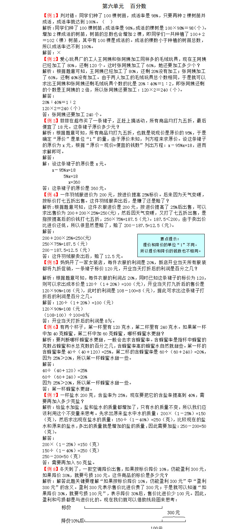 **版六年级上册第六单元百分数试题解析,word格式,共3页,可打印下载**