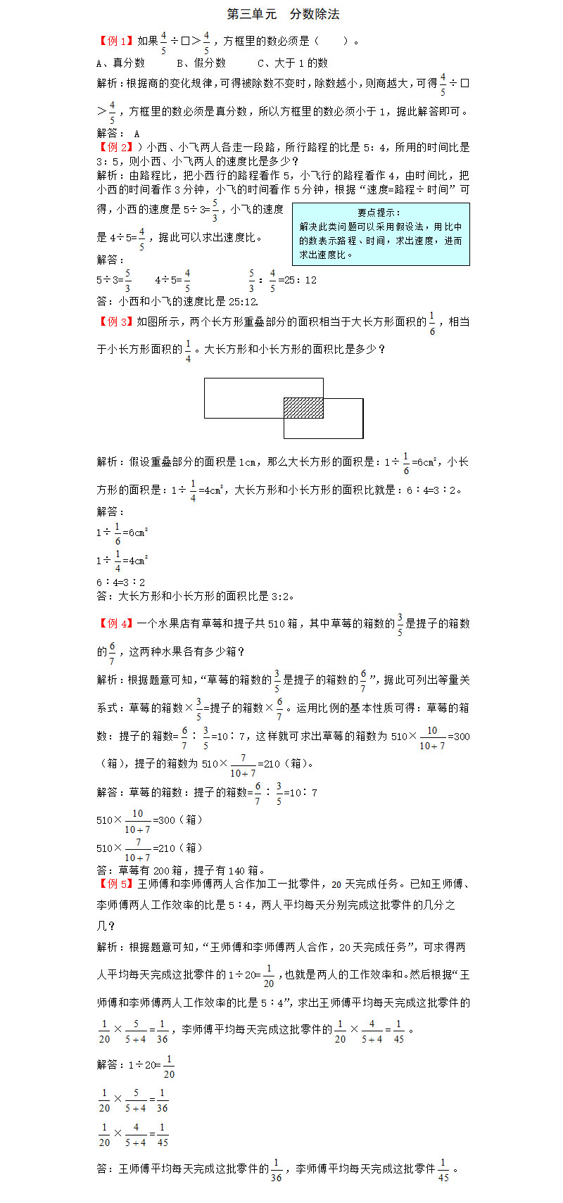 **2021年苏教版六年级上册第三单元分数除法试题解析,word格式,共2页,可打印下载**