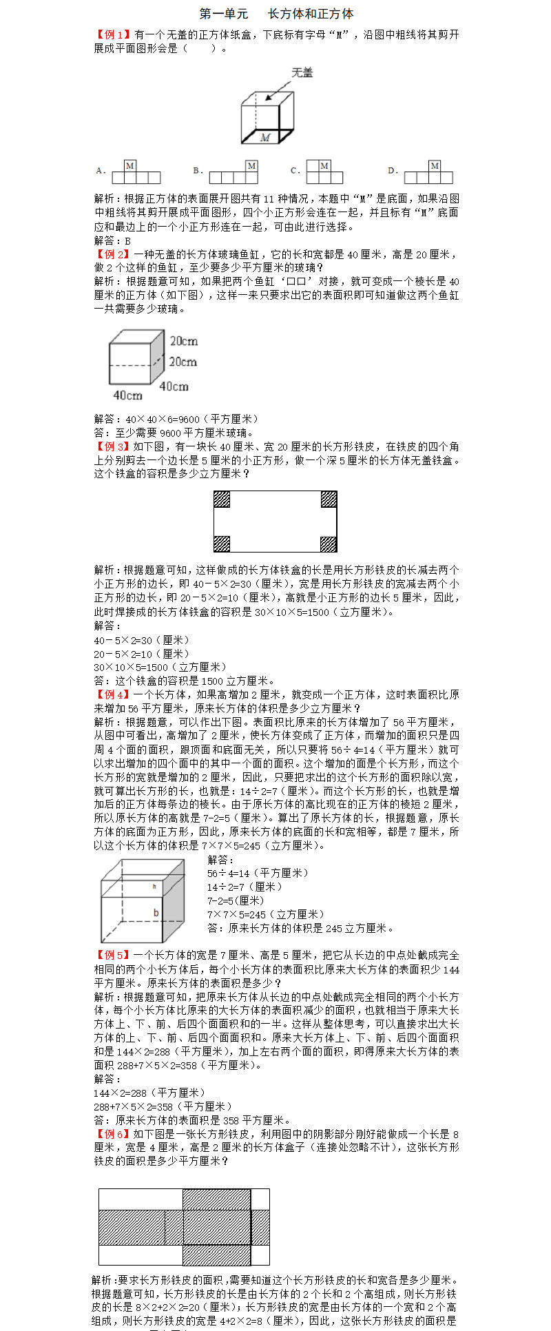 2021年苏教版六年级上册第一单元长方体和正方体试题解析