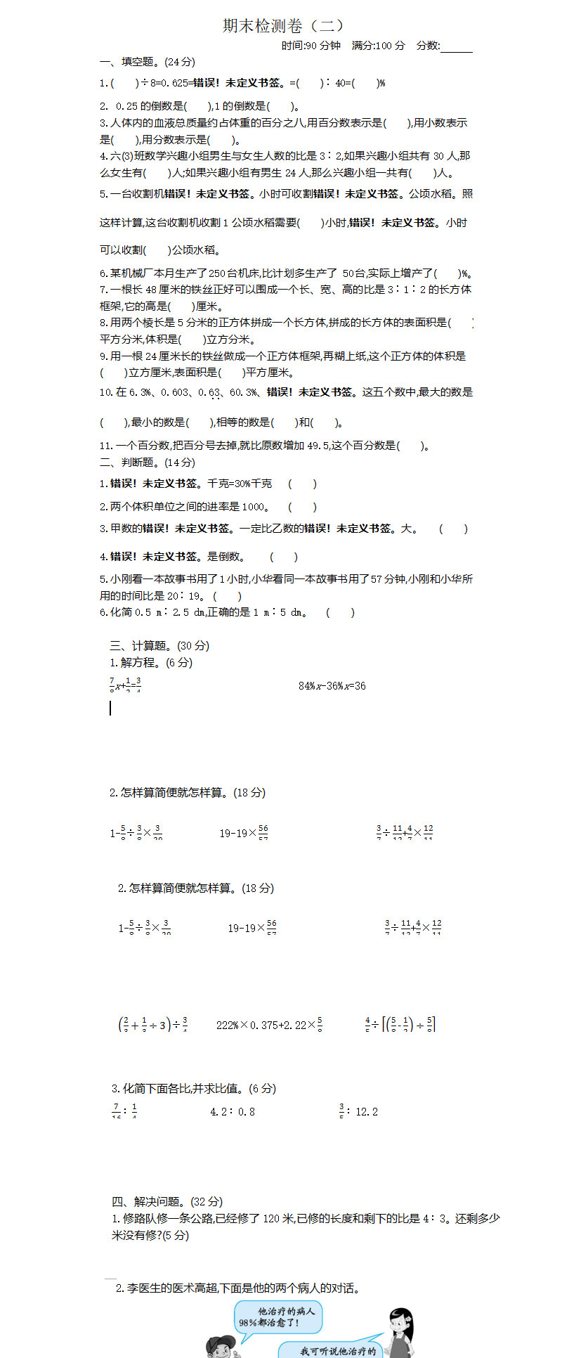 **2021年苏教版六年级数学上册期末复习题及答案二,word格式,共7页,可打印下载**