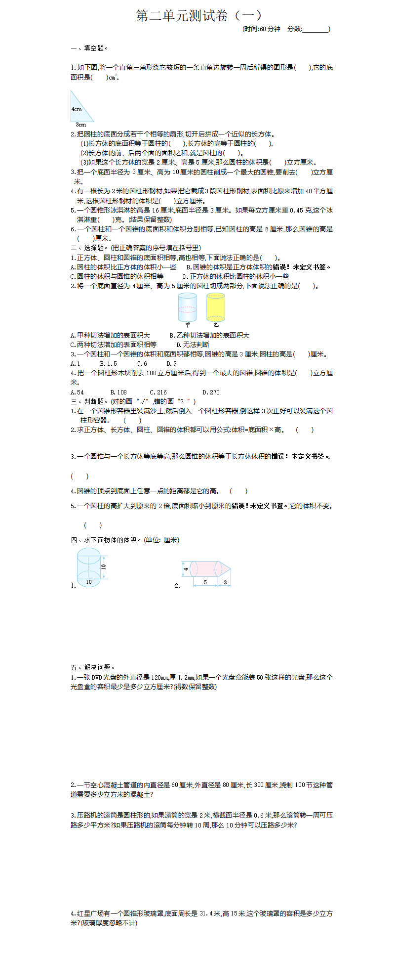 **2021年苏教版六年级数学下册第二单元测试题及答案一,word格式,共4页,可打印下载**