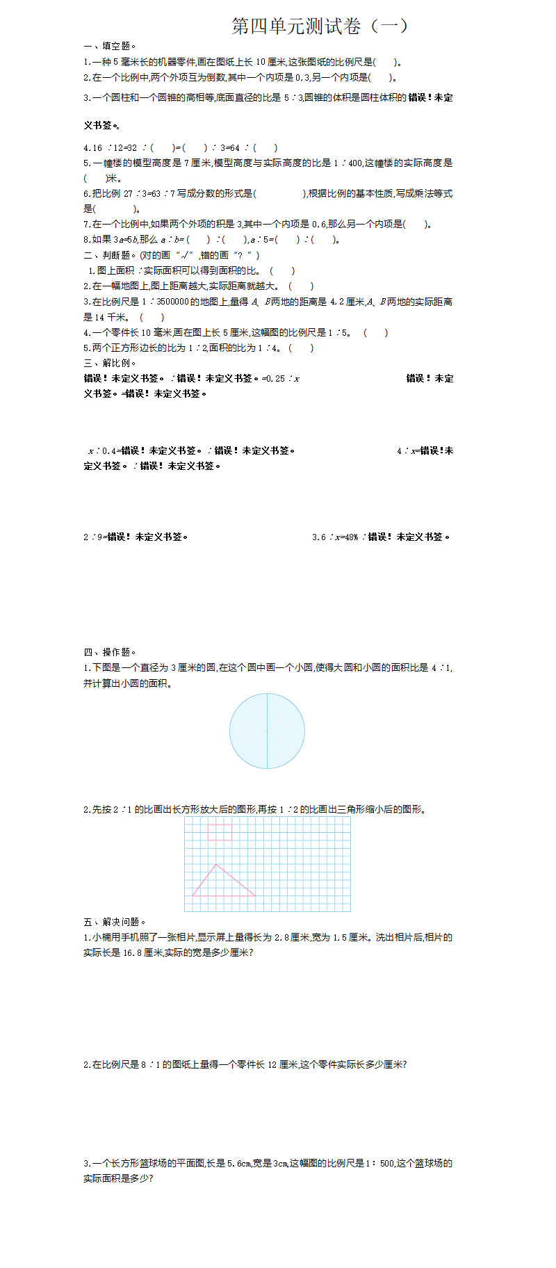 **2021年苏教版六年级数学下册第四单元测试题及答案一,word格式,共4页,可打印下载**