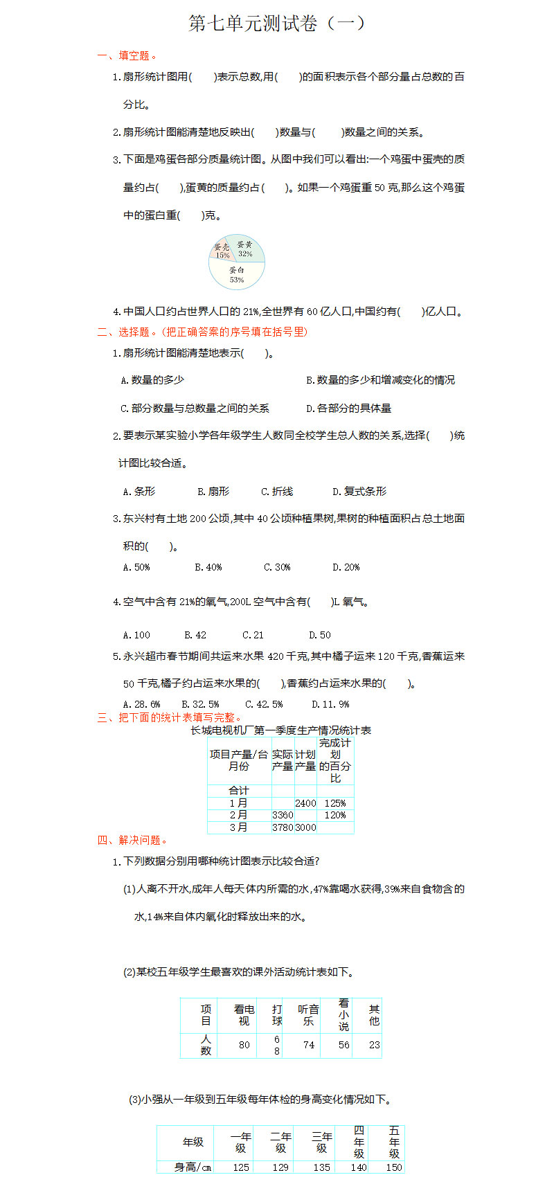 **2021年人教版六年级数学上册第七单元测试题及答案一,word格式,共5页,可打印下载**