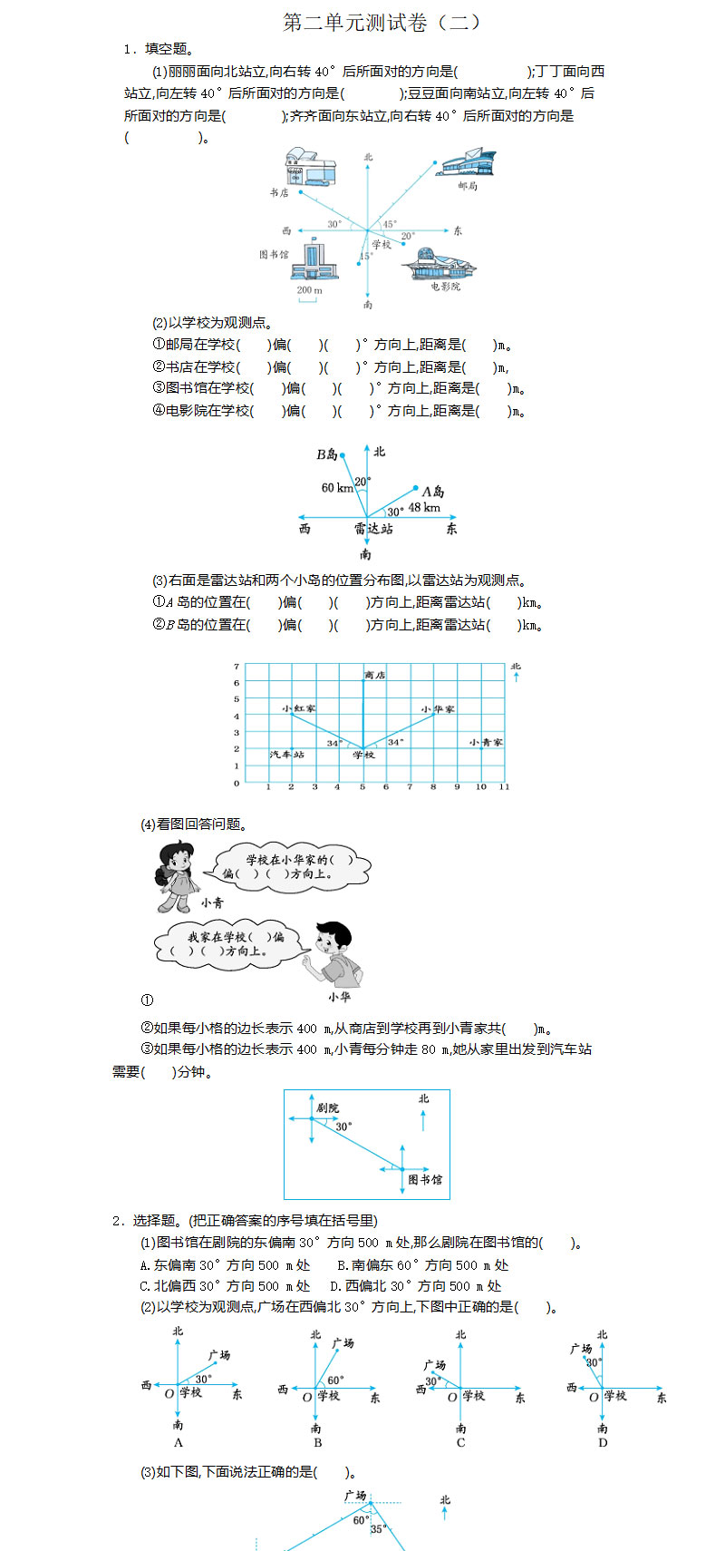 **2021年人教版六年级数学上册第二单元测试题及答案二,word格式,共4页,可打印下载**