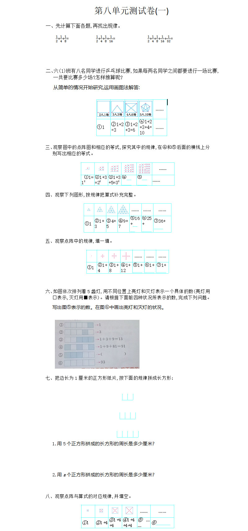 **2021年人教版六年级数学上册第八单元测试题及答案一,word格式,共6页,可打印下载**