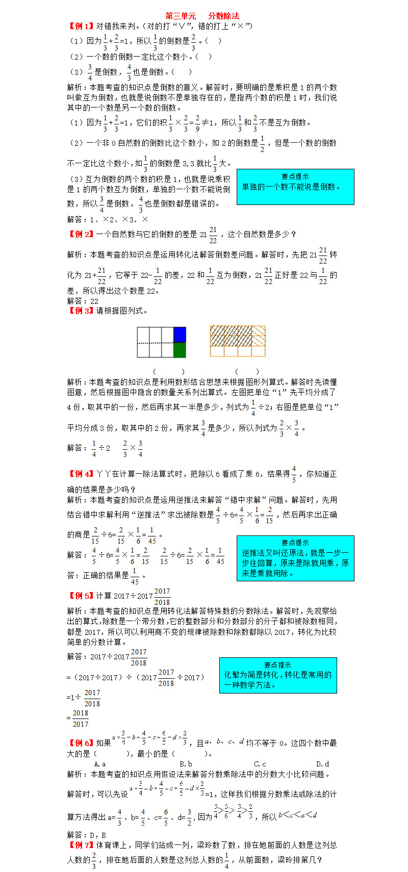 **2021年人教版六年级上册第三单元分数除法试题解析,word格式,共6页,可打印下载**
