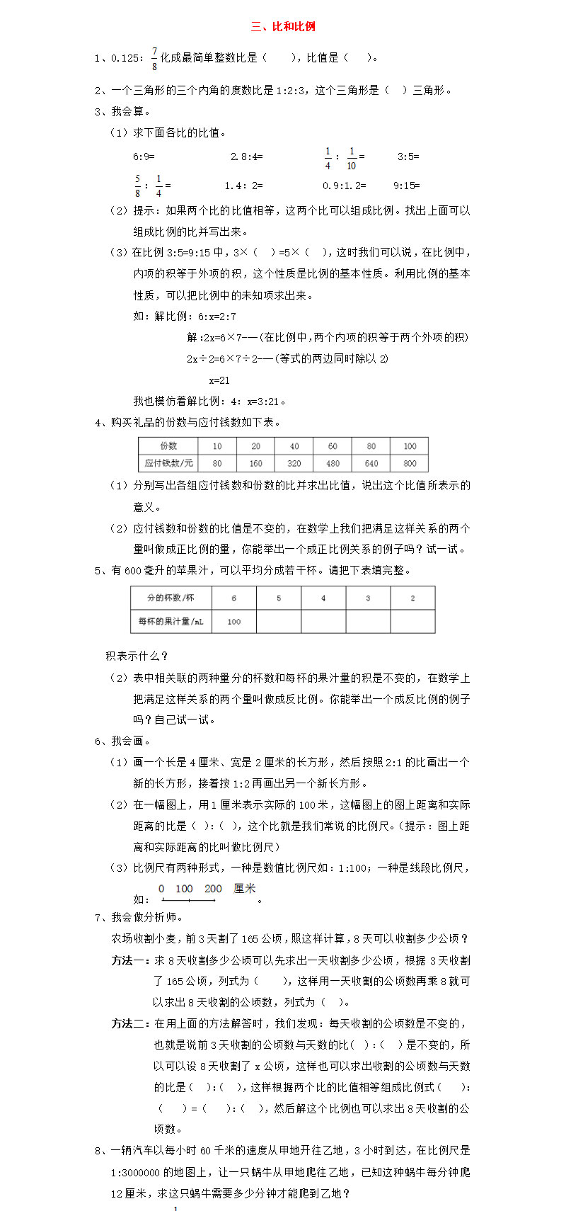 **2021年青岛版六年级数学上册三、比和比例期末复习题及答案,word格式,共3页,可打印下载**