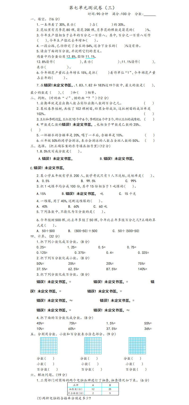 **2021年青岛版六年级数学上册第七单元测试题及答案三,word格式,共4页,可打印下载**