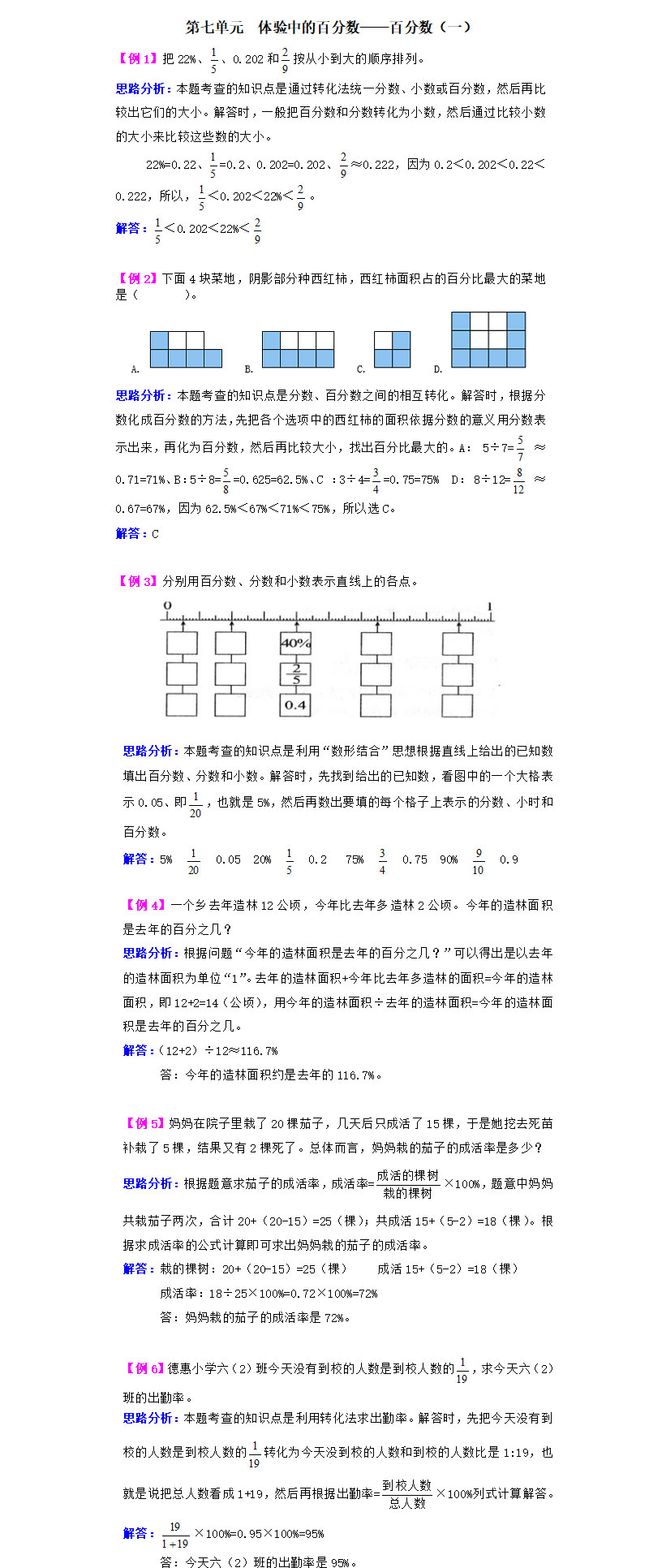 **2021年第七单元体验中的百分数——百分数(一)检测题解析,word格式,共3页,可打印下载**