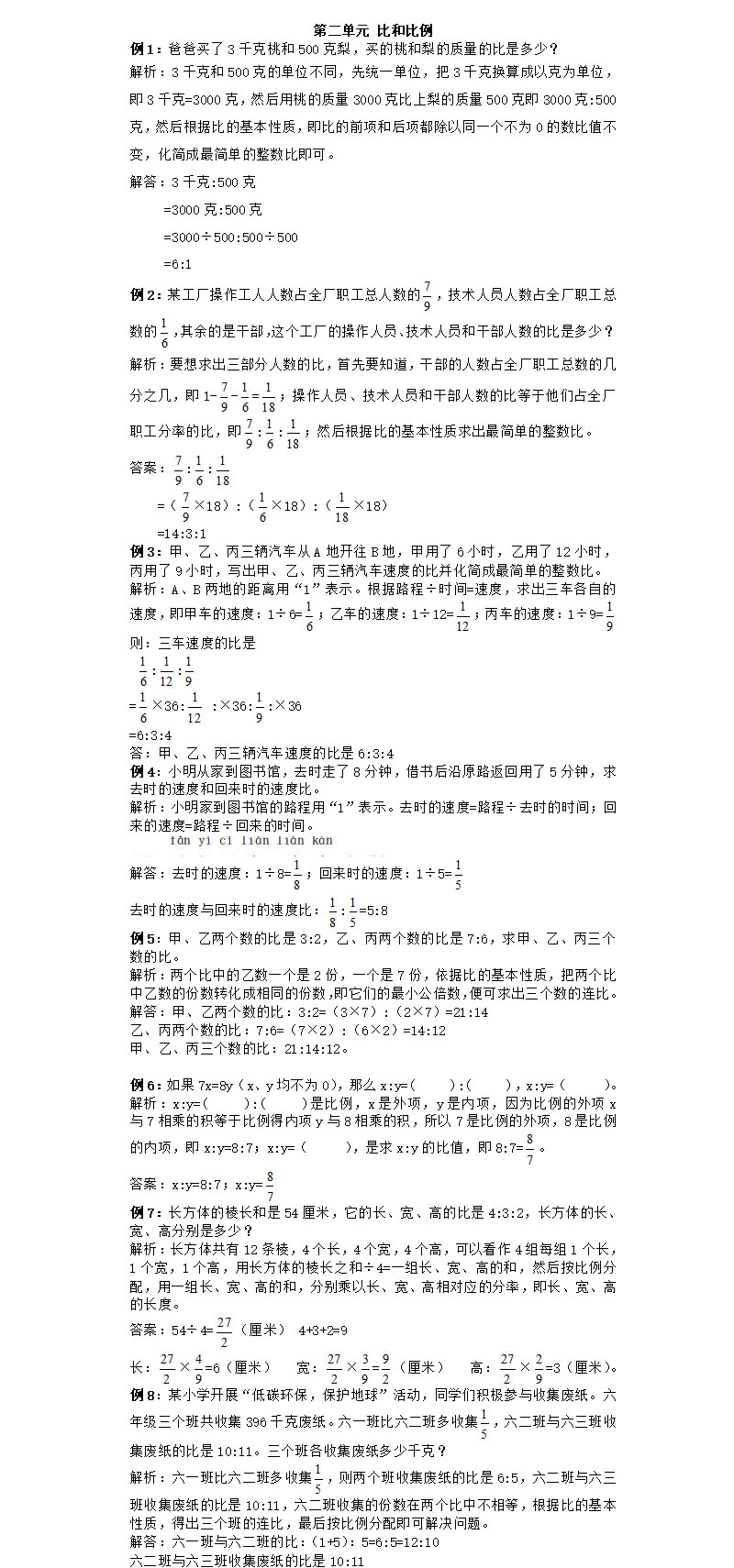 **2021年冀教版六年级上册第二单元比和比例试题解析,word格式,共4页,可打印下载**
