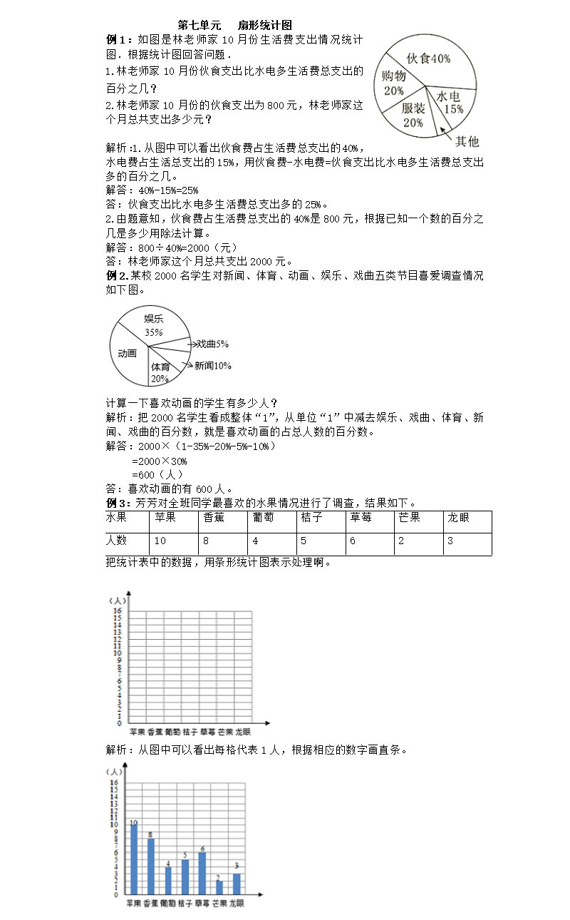**2021年冀教版六年级上册第七单元扇形统计图试题解析,word格式,共2页,可打印下载**