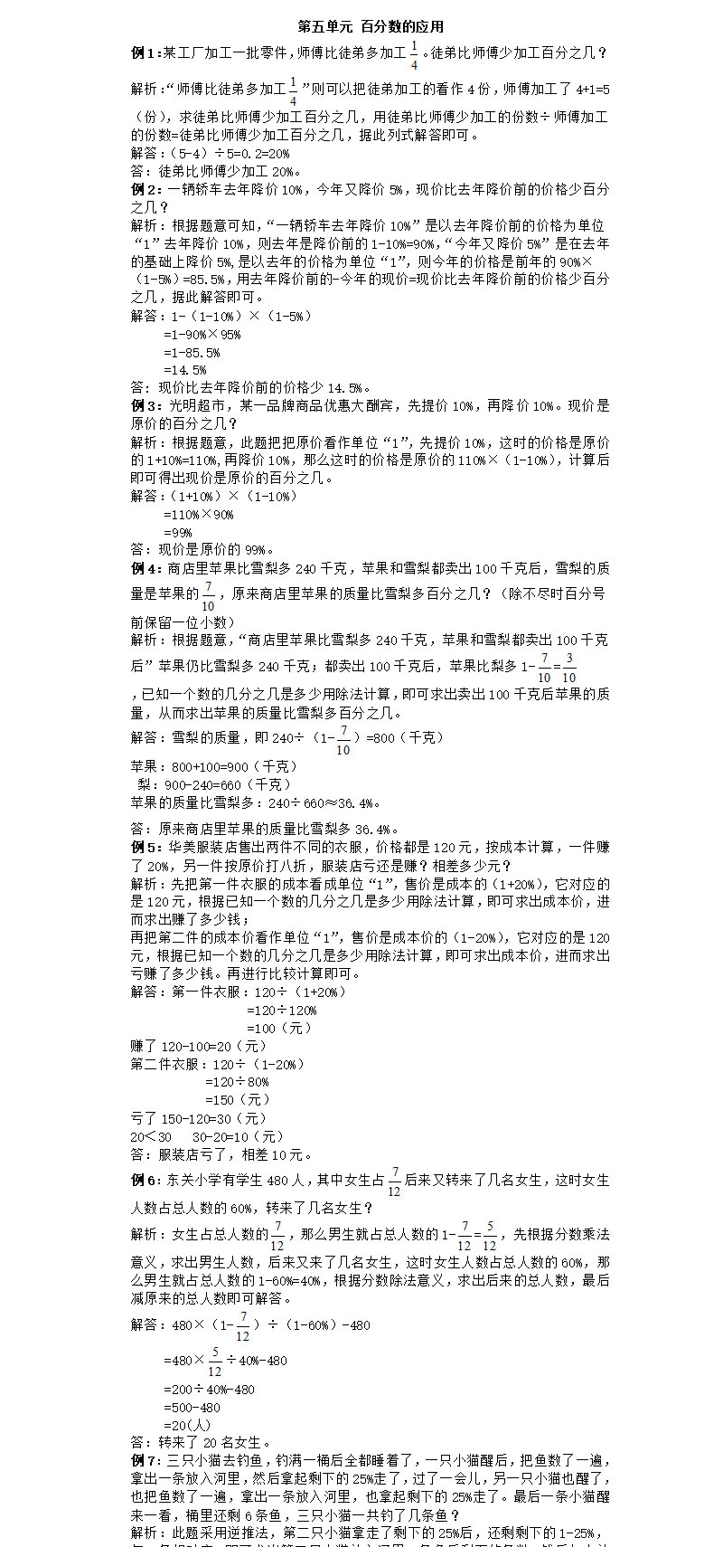 **2021年冀教版六年级上册第五单元百分数的应用试题解析,word格式,共4页,可打印下载**